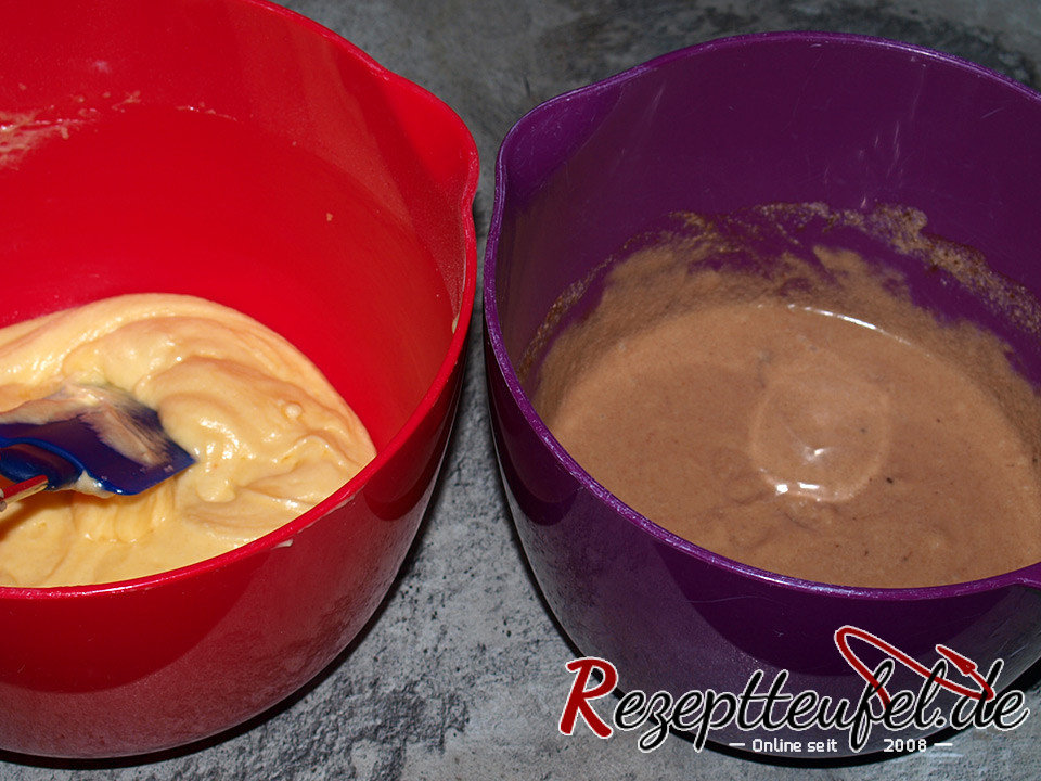 - Der Teig wurde geteilt und eine Hälfte mit Kakao verrührt