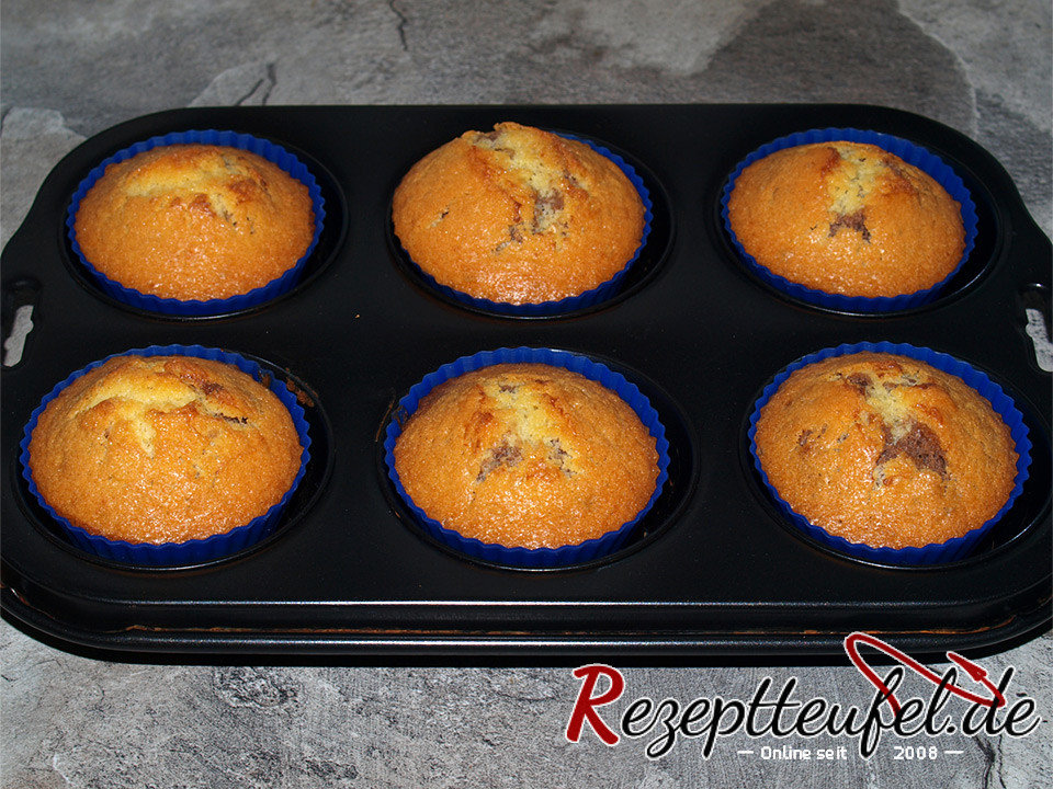 Der Nougatkern bleibt auch nach dem Abkühlen der Muffin cremig. Direkt um den Kern hat sich eine knusprige Schicht gebildet welche durch das Erhitzen der Creme beim Backvorgang entsteht.