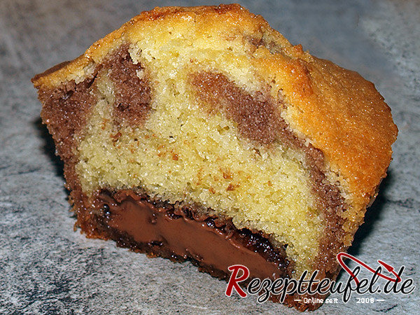 Die Muffins bestehen aus drei erkennbaren Schichten, aus einem hellen Grundteig, von dem die Hälfte mit Kakao eingefärbt wird und die dritte Schicht besteht aus Nougatcreme, welche im Backvorgang nach unten sinkt und somit die unterschiedlichen Teigschichten verschiebt.