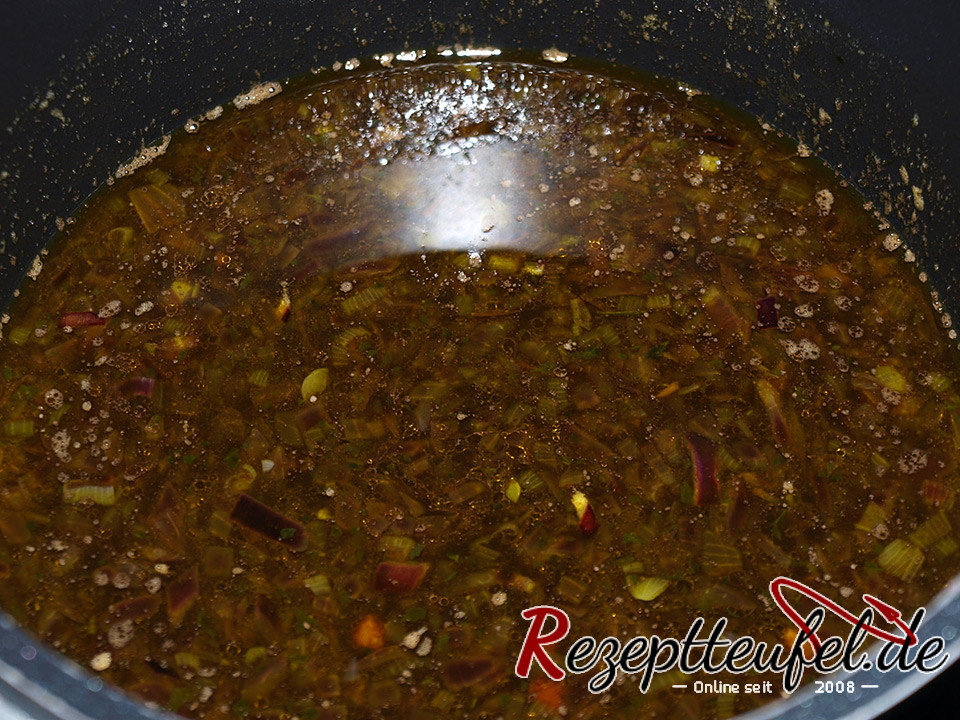 - Instantbrühe , Wasser und den Zucker mit in den Topf geben und den Inhalt aufkochen und etwas abkühlen lassen.