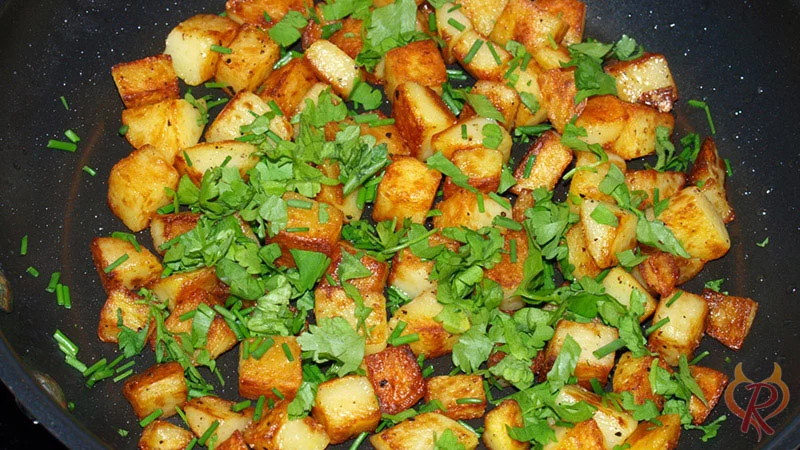 - Bratkartoffeln aus Kartoffelwürfel mit Petersilie