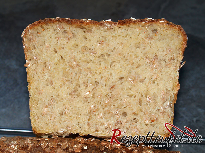 Das Rezept für das Buttermilchbrot mit Dinkelflocken wie wir es backen: