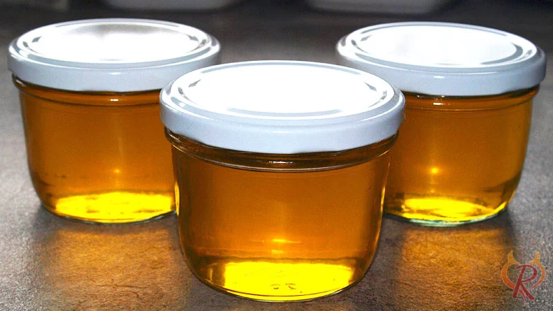 - Frisch abgefülltes Butterschmalz ist noch flüssig und klar.