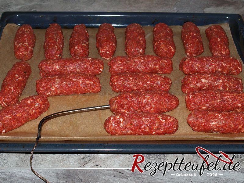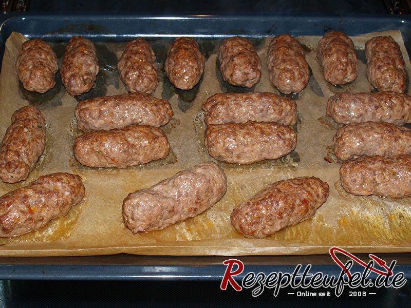 Wir bereiten die Hackfleischröllchen aus der Balkanküche im Backofen zu, die Röllchen können aber auch in einer Pfanne mit Öl gebraten werden. In der Pfanne gebraten entsteht eine schönere braune Farbe. Ab einer gewissen Menge ist die Zubereitung im Backofen allerdings vorzuziehen.