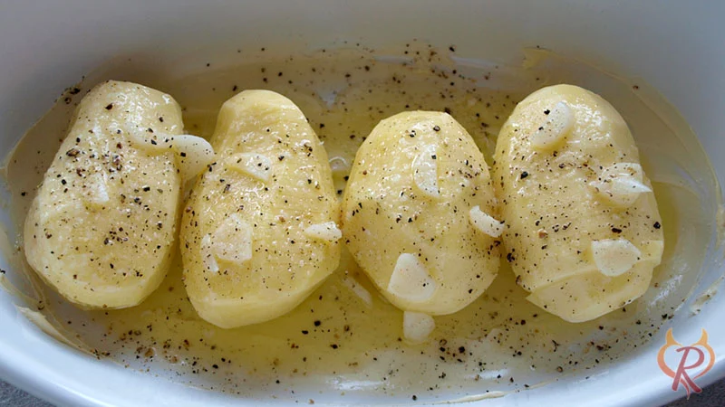 - Die Fächerkartoffeln, bevor der Käse daraufkommt