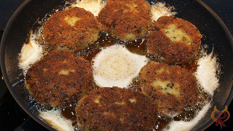 - Die Frikadellen vom Fisch in der Bratpfanne