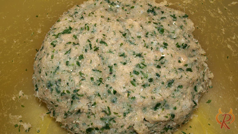 - Die Zwiebeln und die restlichen Zutaten zu dem zerkleinerten Fisch geben und gut vermengen. Aus der Masse Frikadellen formen und diese dann in Paniermehl wälzen.1 Bund Petersilie, 100 g Paniermehl, 2 Eier, Salz, schwarzer Pfeffer, 3 EL Paniermehl