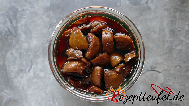 Die Früchte sollten mindestens 4 Wochen im Essig ziehen, um genügend Geschmack abzugeben. Wir lassen den Feigenessig gerne noch einige Wochen länger ziehen und sind der Meinung, dass er dann noch besser schmeckt.