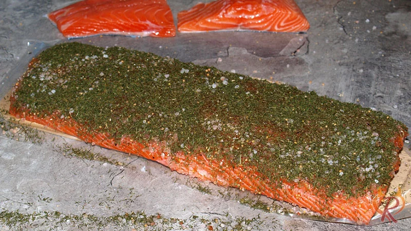 Graved Lachs im Vakuumverfahren gebeizt, selbst Lachs beizen ist nicht schwer.