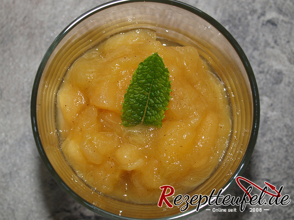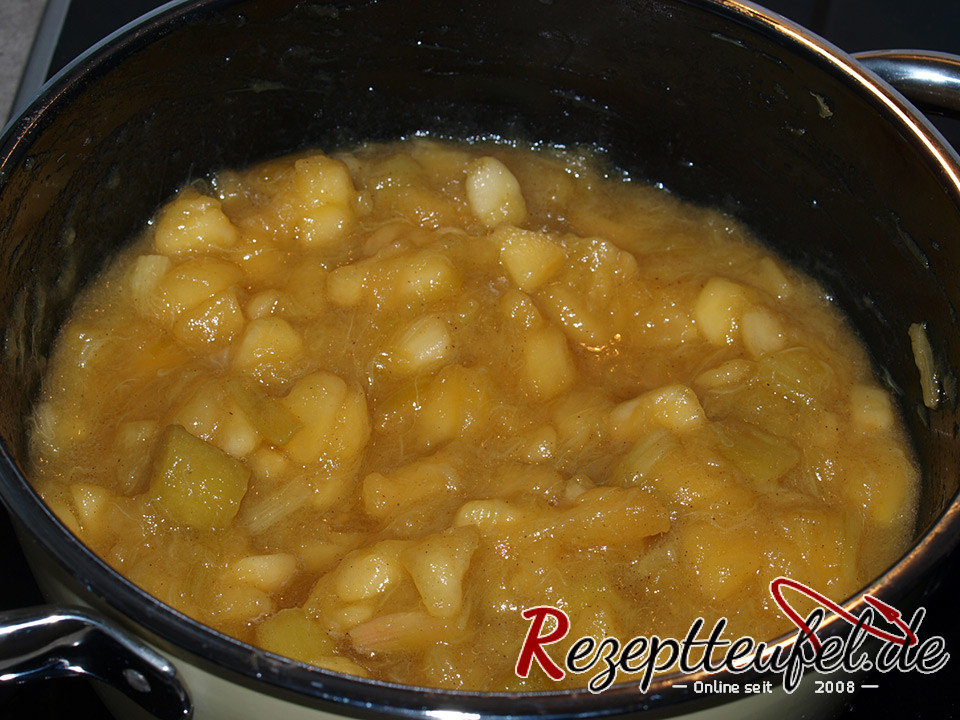 Apfel-Rhabarberkompott mit Karamellnote und mit gemahlener Vanille verfeinert. Komplett bebilderte Anleitung