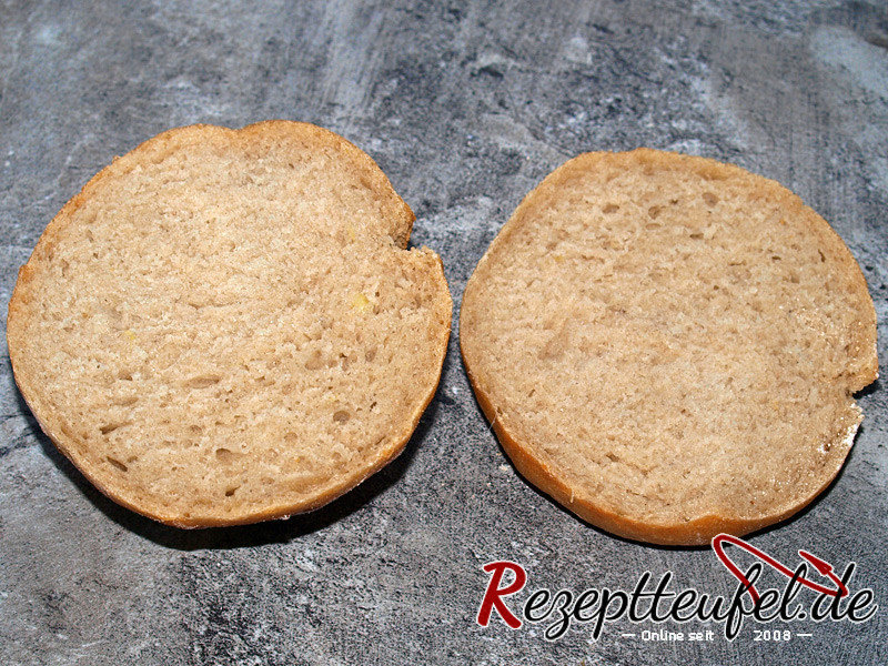 Die Brötchen können sehr gut vorab gebacken und eingefroren werden. Zum Genuss die Brötchen auftauen und im Backofen nochmals 5 Minuten auf 200 °C Ober-Unterhitze aufbacken.