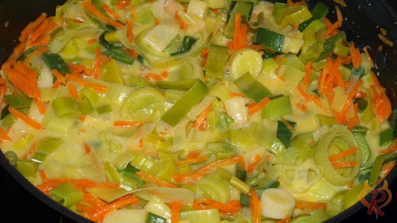 Lauch und Möhren vereinen sich zu einem leckeren Gemüse in einer cremigen Soße.
