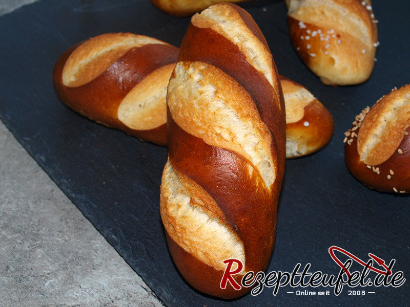 Wir backen die Laugenstangen gerne auf einem vorgeheizten Backstein.