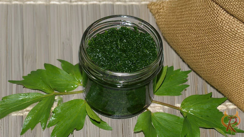 Verwendet werden für die Paste aus Liebstöckel nur die Blätter, Stiele sollten nicht hinzugefügt werden. Die Blätter müssen trocken sein, und zwar wirklich trocken, es darf sich kein Wasser mehr daran befinden! Eventuell ist es sinnvoll, einen Föhn zu benutzen, um die Blätter richtig trocken zu bekommen.