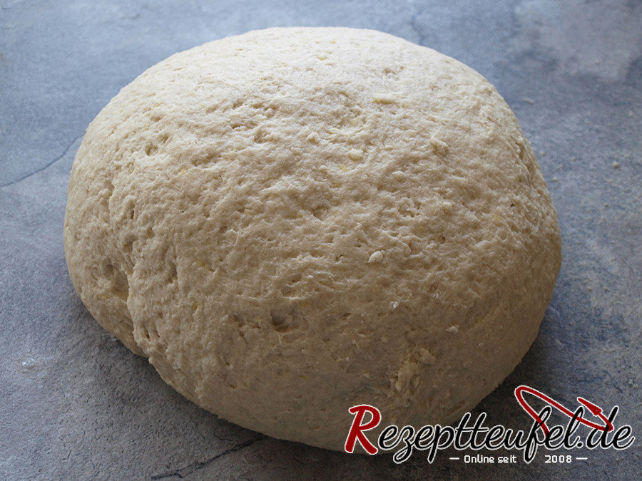 - Anschließend nochmals durchkneten, abdecken und 10 Minuten ruhen lassen. Jetzt ist ein wirklich elastischer Teig entstanden.