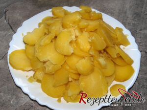 - Die Kartoffeln pellen und in Scheiben schneiden