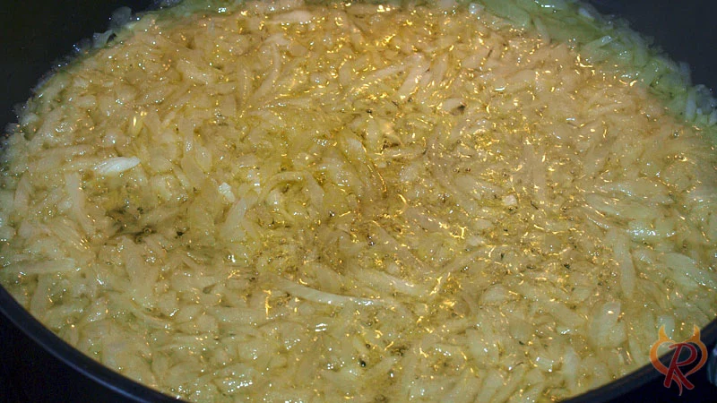 - Die geschmorten Zwiebeln