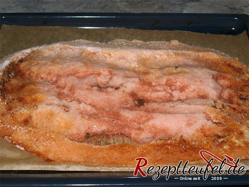 - Das Salzbett ergibt nach dem Garen vom Fleisch einen verkrusteten Klumpen