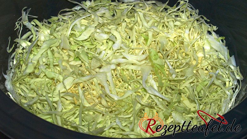 - Den Spitzkohl als unterste Schicht im Slow Cooker