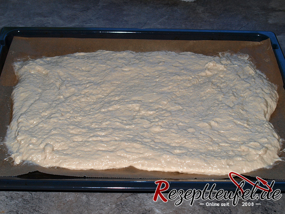 - Nahansicht des bestreuten Teiges vor dem Backen