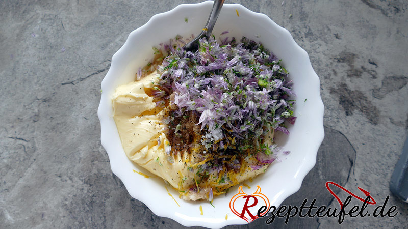 Aus 8 Komponenten gewürzte Schnittlauchblütenbutter mit Zitrone und Knoblauch