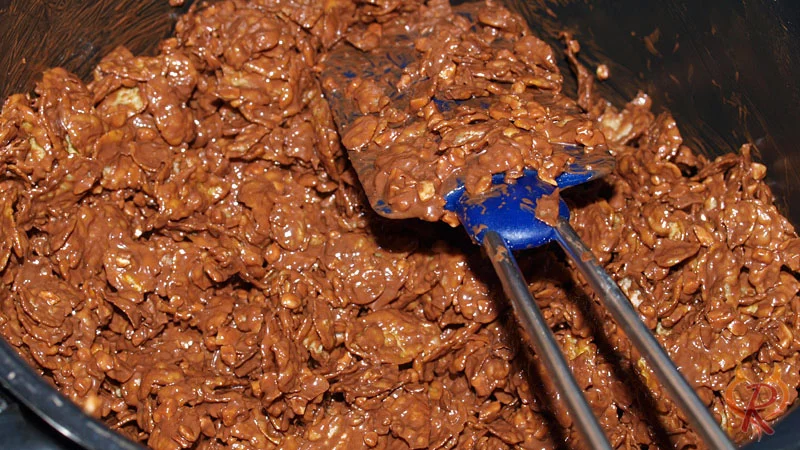 - Schokolade mit Cornflakes und Haselnüssen vermengt