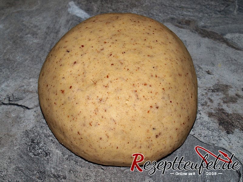 - Butter, Zucker, Eier und Vanillezucker schaumig rühren, die Haselnüsse und Mehl zugeben und zu einem Knetteig verarbeiten.250 g Butter, 2 Eier, 200 g Zucker, 1 EL Vanillezucker, 125 g Haselnüsse, 500 g Weizenmehl Type 405