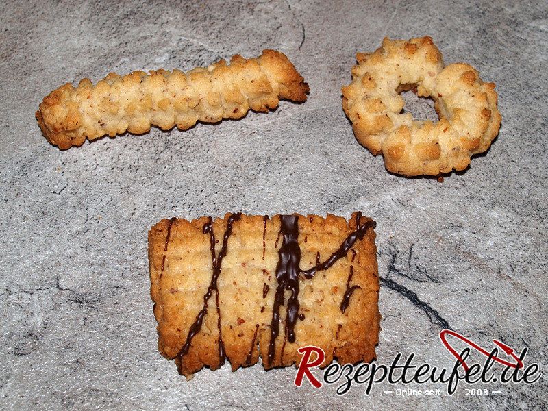 Das knusprige Spritzgebäck mit gemahlenen Haselnüssen wird aus einem sehr festen Teig hergestellt.