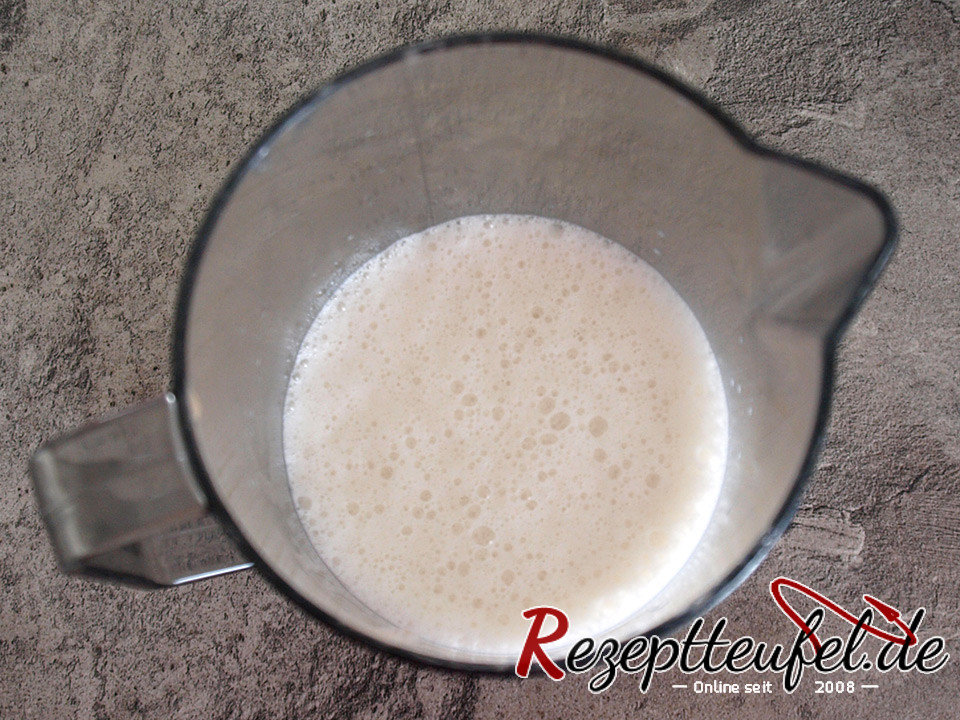 - Die aufgeschäumte Hefe in der Milch