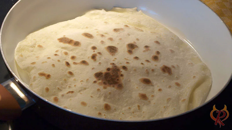 - Der Teigfladen wird in einer Pfanne zum Tortilla-Wrap gebacken.