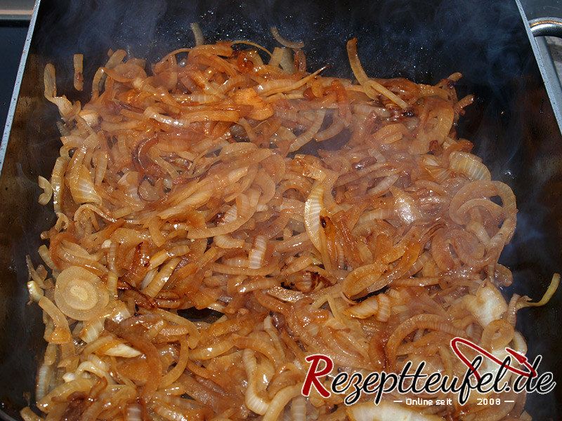 Der Bratensatz löst sich vom Zwiebelsaft.