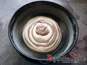 - Die Käsekuchenmassen abwechselnd in die Form geben