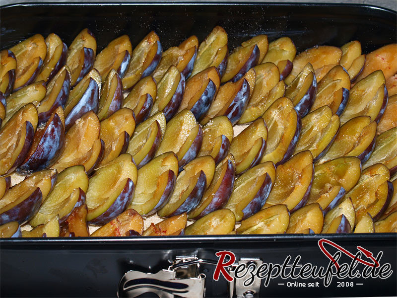 - Für eine rechteckige Springform 1,5 Kilo Zwetschen