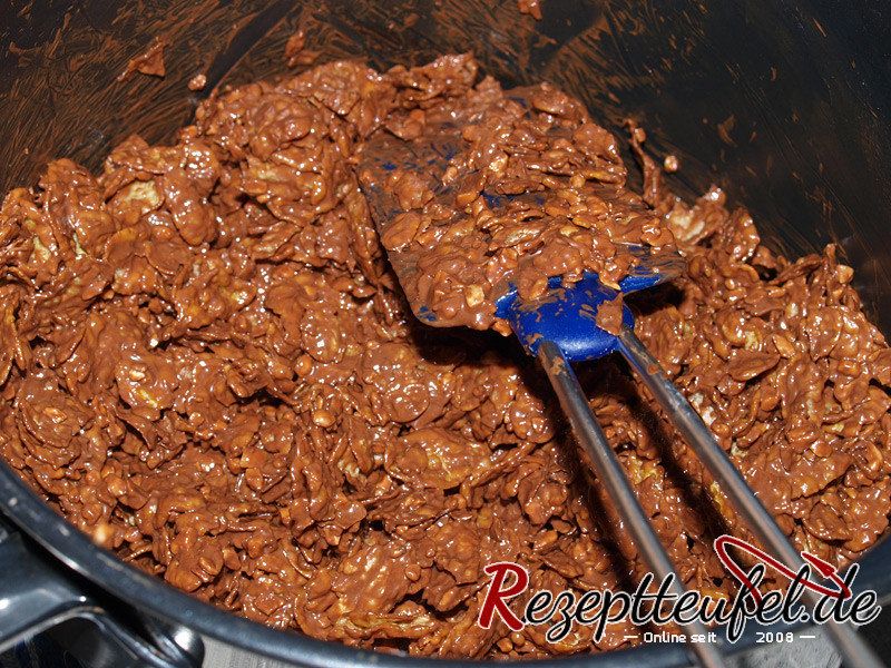 - Schokolade mit Cornflakes und Haselnüssen vermengt