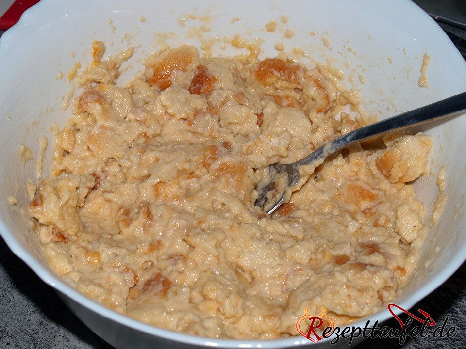 Bei diesem Gericht ist es wichtig, die Nocken vom Brotklößchenteig schnell in die kochende Brühe zu geben. Wird zu langsam gearbeitet, so werden die ersten Brotklößchen matschig, während die Letzten bis jetzt nicht gar sind. Deshalb steht dieses Rezept unter dem Schwierigkeitsgrad: etwas Übung erforderlich